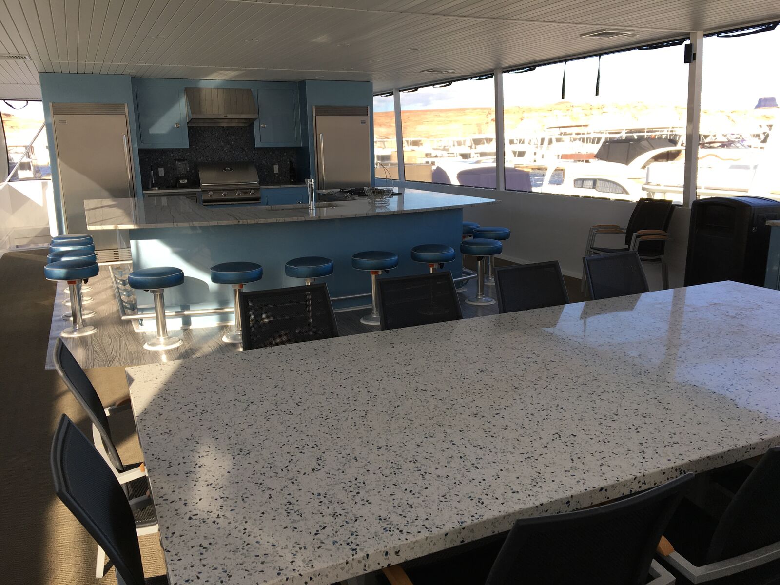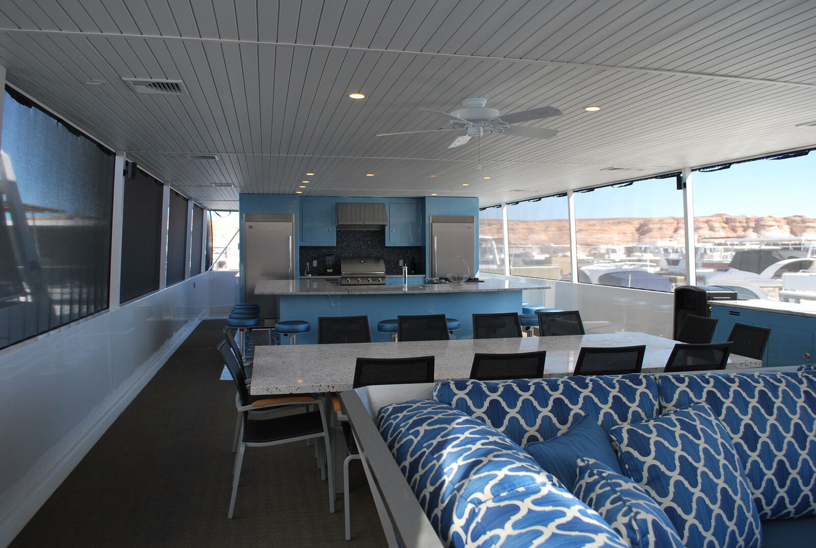 AZUL is a luxury, custom-built houseboat featuring an 86’ x 22’ reverse floor plan, designed for large groups who want premium comfort, entertainment, and performance. This boat is impeccably managed, professionally maintained, and kept in like-new condition.