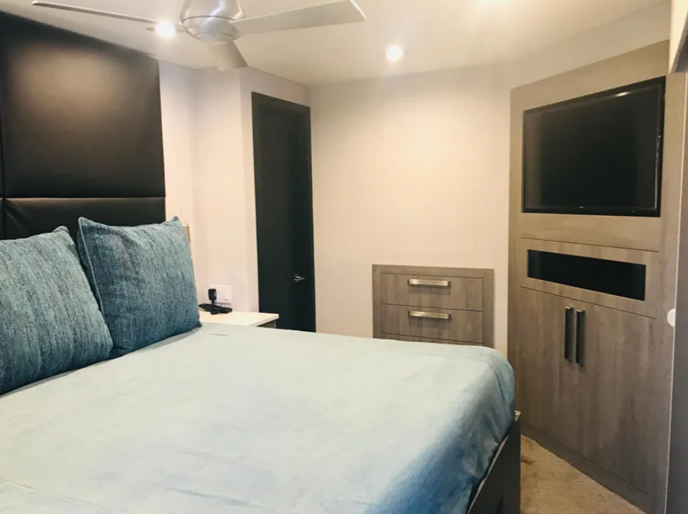 - 60″ LED TV in weatherproof, remote-controlled top-deck cabinet