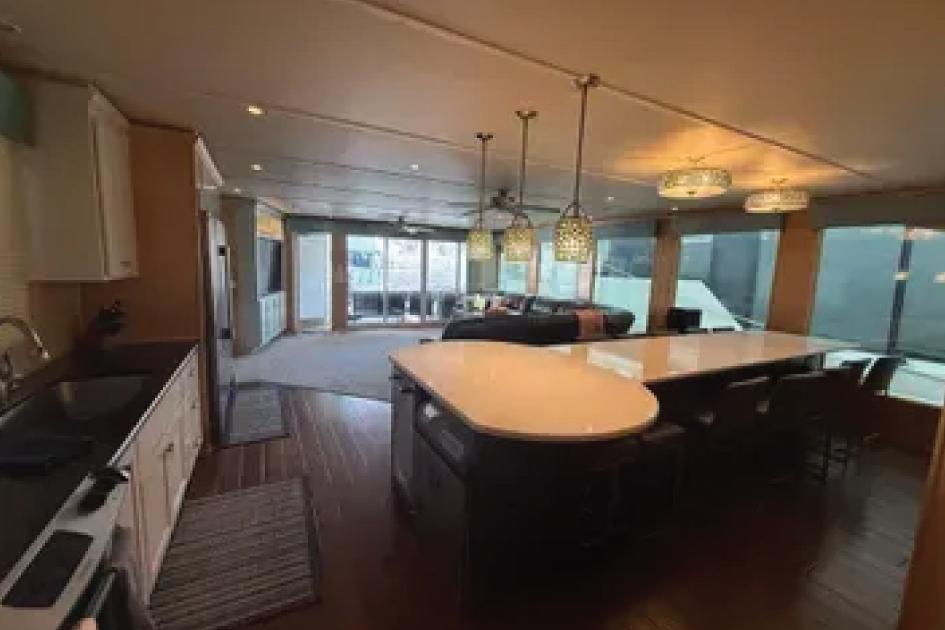 6 owner, lake facing family room boat! Plenty of opportunity to have lots of time each season. 7 bedrooms, 2 and ½ bathrooms, 2 Kitchens, Owner storage bins on 3rd deck. 2nd deck slide and actual diving board. Grill and smoker on 2nd deck. 1 speedster jet boat kept in dry storage. Rear mounts for water craft. Canoes, paddle boards, lily pad, Starlink satellite dish. Buyer to have 10 years of houseboating experience with approval by other owners.