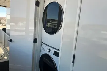 - 66″ stainless steel full refrigerator/ freezer combo in galley