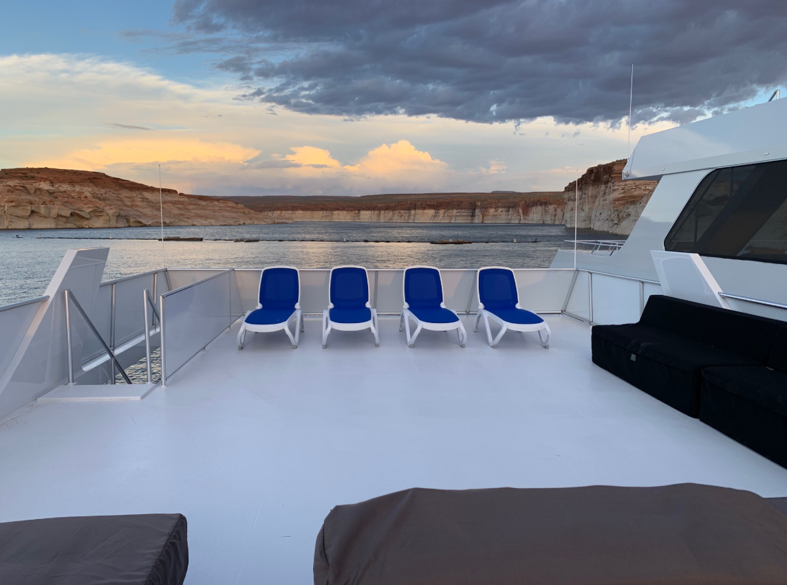 Utopia is a stunning 2019 Adonia 75’ x 22’ luxury houseboat, featuring a custom-designed reverse floorplan, expansive entertainment areas, and a rare third-level sun deck. Designed for large groups and premium Lake Powell experiences, this vessel delivers residential-style comfort paired with robust marine systems.