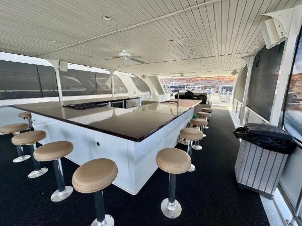 - Top Deck Bar: Custom U-Shaped, Sink, Icemaker, Freezers, Gas Stove, Dishwasher, 17 Barstools